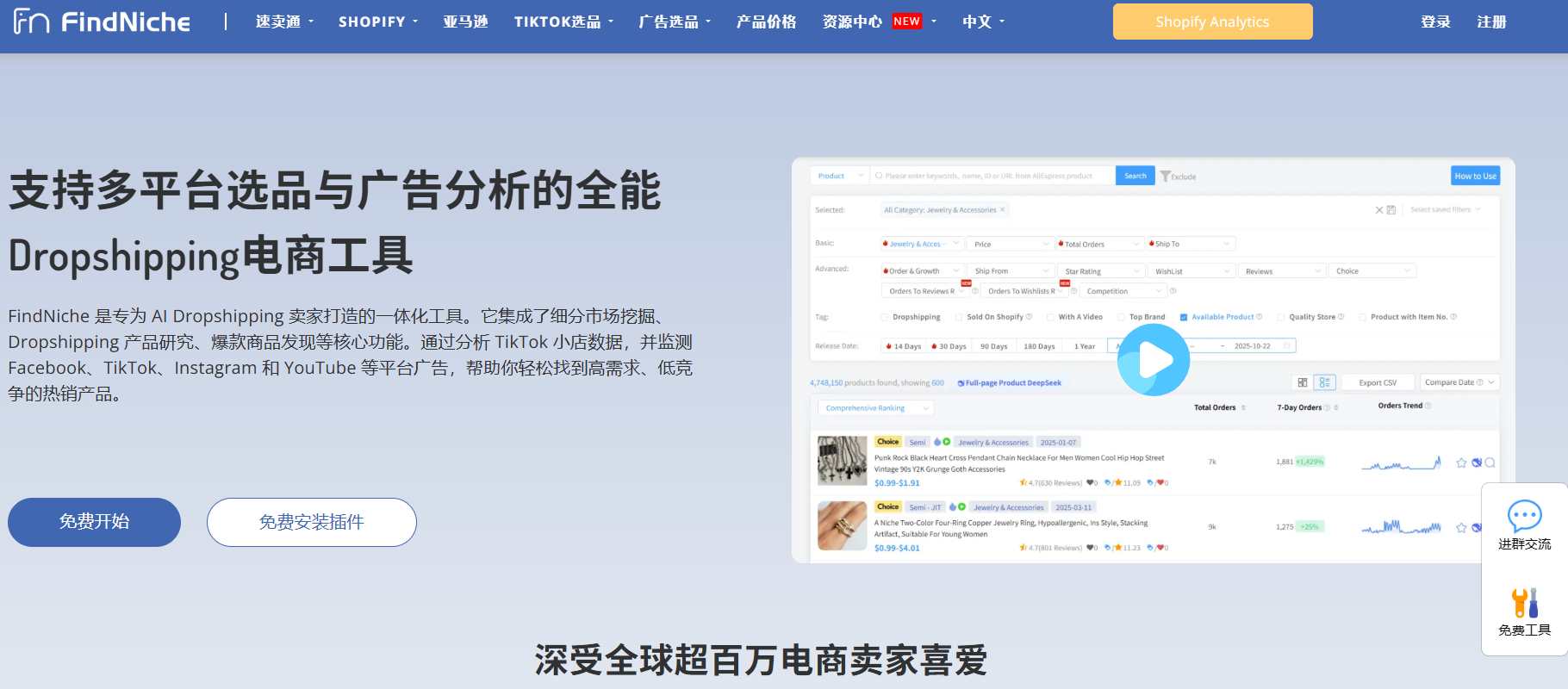 FindNiche: 专注全球速卖通和 Shopify 的爆款分析。
