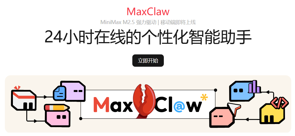 MaxClaw(云端版):MiniMax 在其服务器上为你跑通了整个 OpenClaw 底层,并直接集成在
