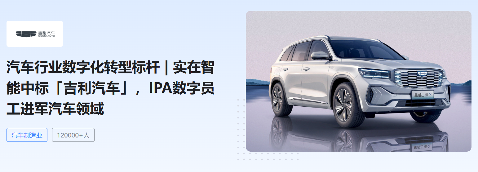 数字化路径: 实在Agent自动登录吉利内部系统及供应商门户,实时同步物料需求计划(MRP),自动处理采购订单。