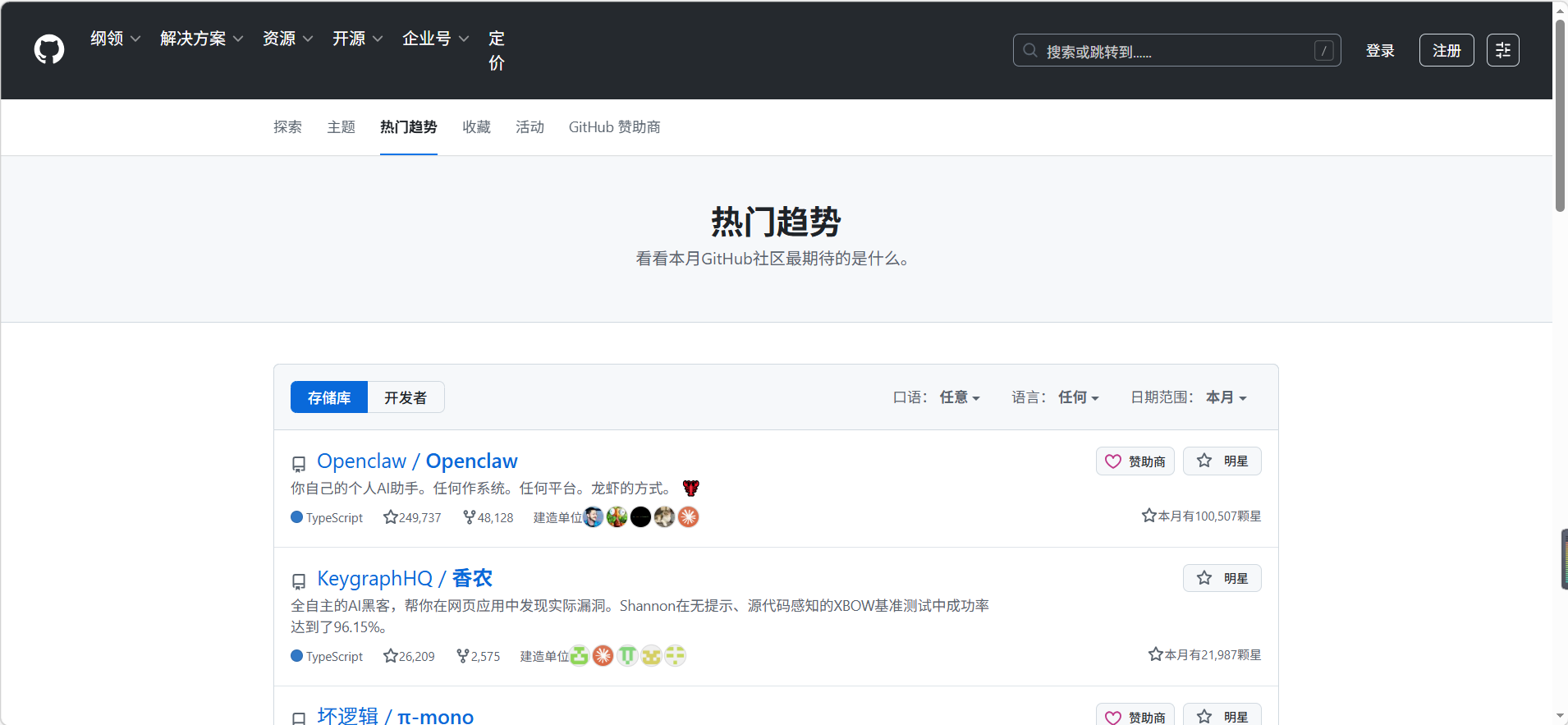 增长轨迹:该项目在 2025 年末至 2026 年初的几个月内,凭借极低的接入使用门槛与爆发式的社区传播,迅速斩获超 22.8 万 Star,创下了 GitHub 史上最快的项目增长斜率。