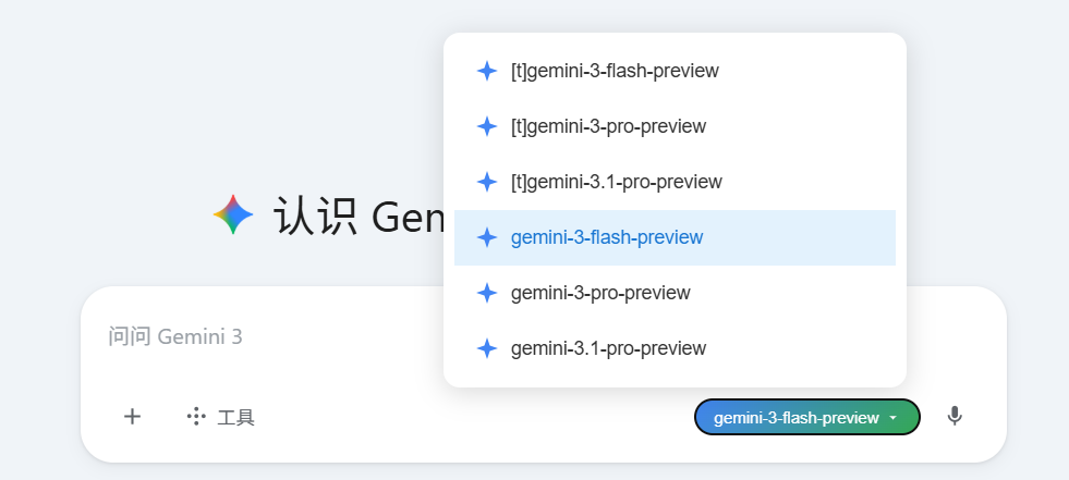 点击顶部模型切换按钮,选择“Gemini 3 Pro”或最新版本。平台同时提供GPT-4o、Claude 3.5等选项,方便随时切换对比。