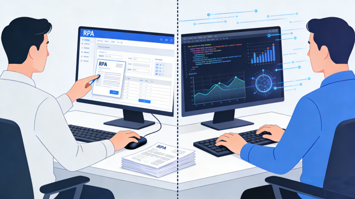 RPA是一种基于图形界面的自动化技术,可以模拟人类用户在计算机上的操作行为。RPA通常使用可视化的设计工具来创建流程,无需编写代码,可通过拖拽、点击等操作完成自动化任务。而脚本是一种编程语言,需要使用代码编写自动化脚本,通过编写程序来完成自动化任务。