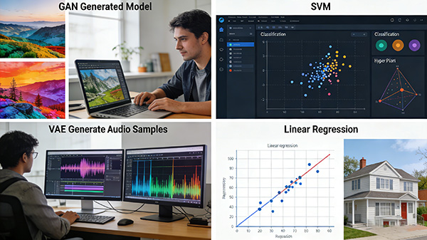 判别式模型:广泛应用于分类、回归和异常检测等任务。例如,SVM可以用于分类问题,而线性回归可以用于预测房价等实际问题。