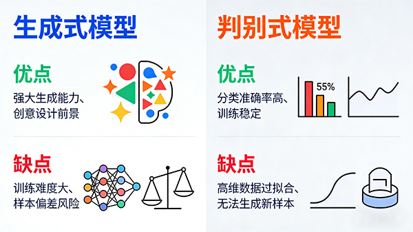 生成式模型在创意设计、数据增强等领域具有广泛的应用前景,而判别式模型则在分类、回归等常见任务中表现出良好的性能。