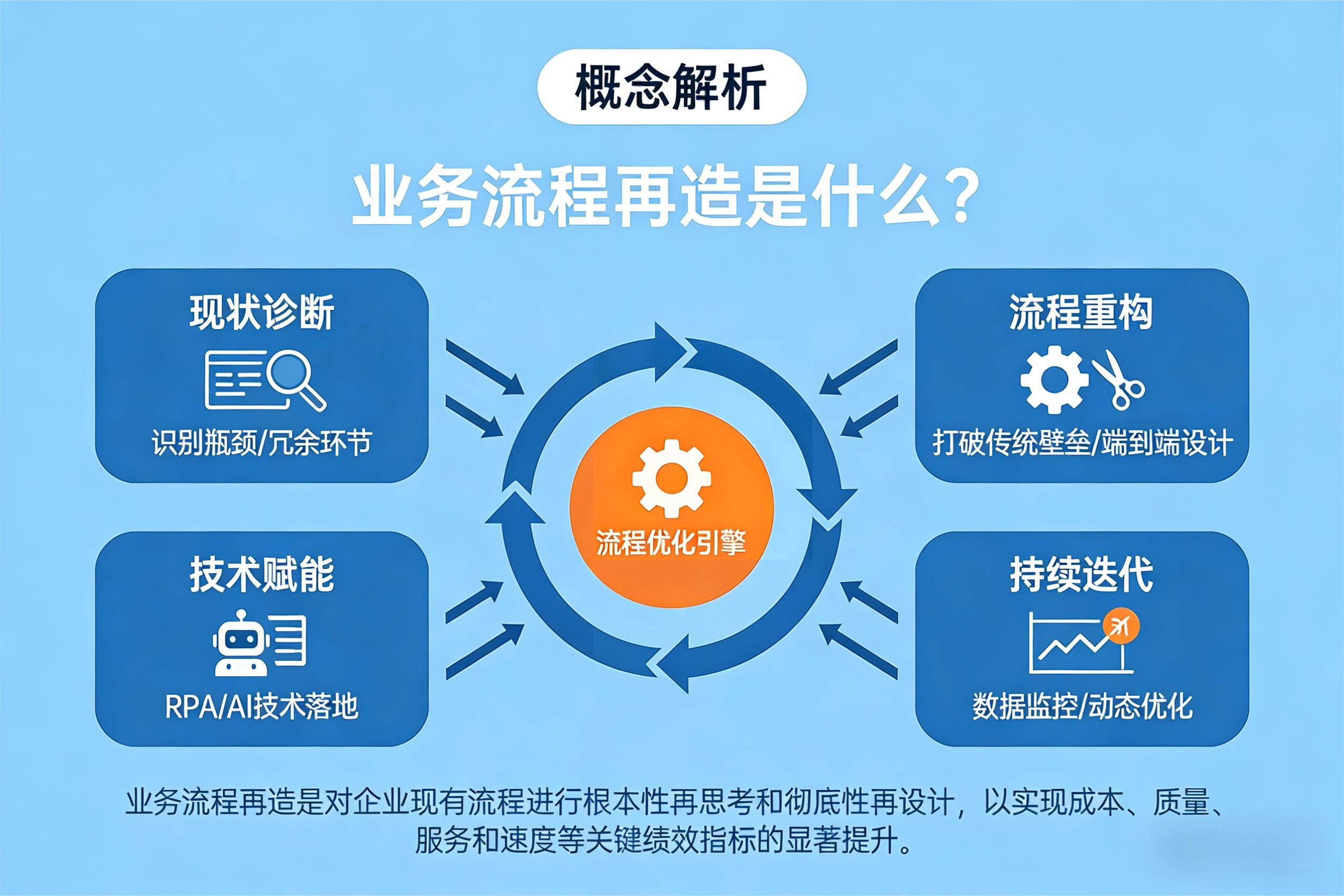总的来说,业务流程再造是一种全面的、系统的业务流程改进方法,它的目标是提高企业的运营效率、降低成本、提高客户满意度,帮助企业实现战略目标。