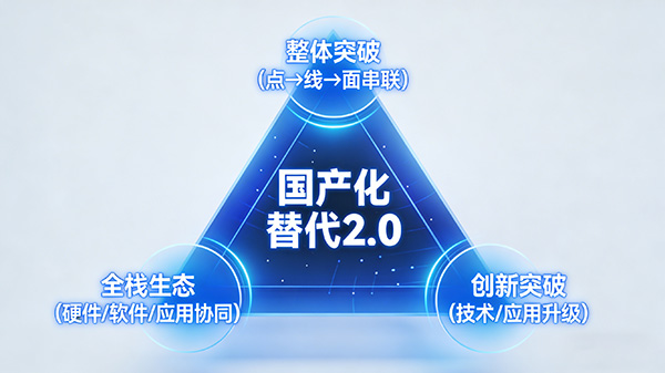 相较于过去的国产化1.0阶段,信创在发展过程中强调把点串联起来,形成整体突破,而非单点突破;同时,信创强调全栈支持,实现生态建设,而不仅仅是替代;此外,信创还要求在产品或服务上进行技术或应用上的突破与创新。