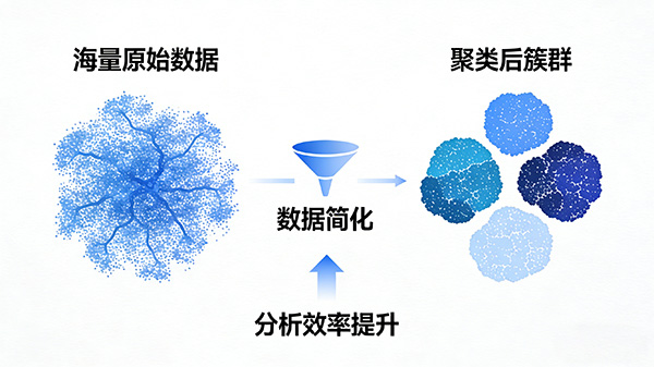 简化数据分析:通过聚类,可以将大量的数据简化为几个主要的簇,使得分析更为简单和直观。