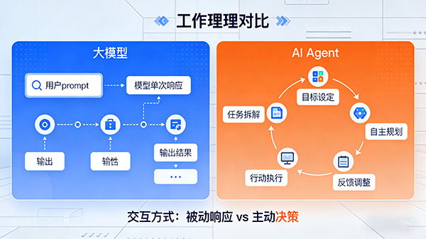 AI Agent和大模型的主要区别体现在以下方面: