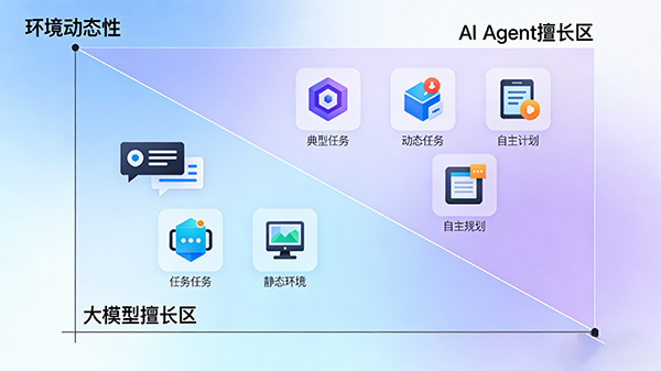 AI Agent相比大模型具有一定的自主判断能力。这种能力使得AI Agent在处理未知信息或难以预测的环境时,能够通过与环境的交互、感知信息并做出对应的思考和行动,展现出更高的适应性和灵活性。