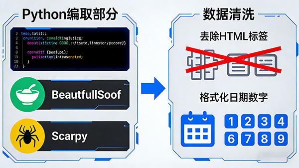 对提取的数据进行清洗,去除不必要的HTML标签、空格或特殊字符。